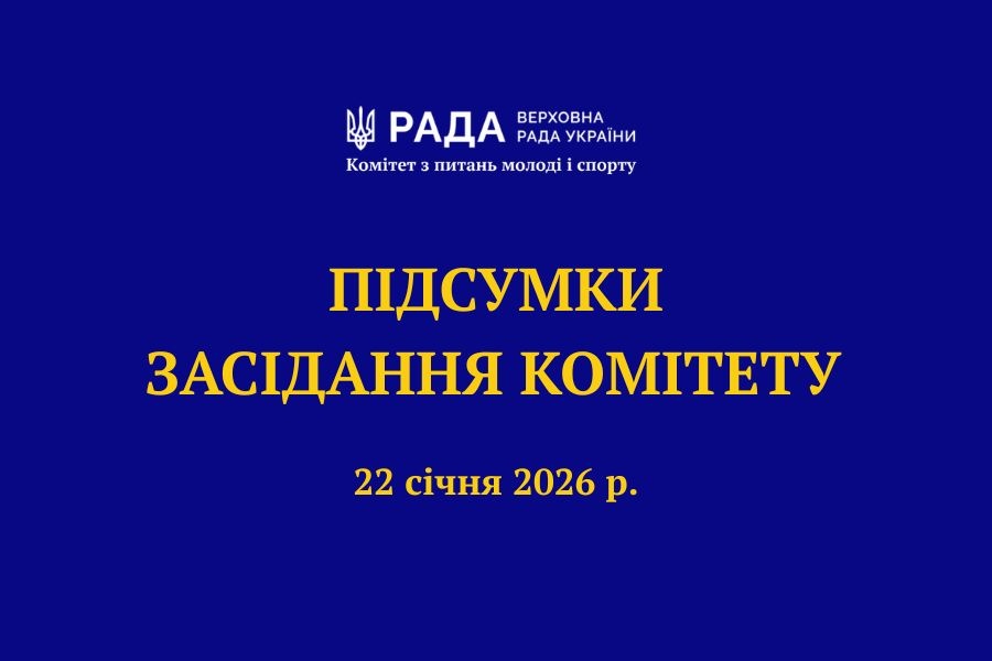 22 січня 2025 року на своєму засіданні Комітет Верховної Ради України з питань молоді і спорту розглянув низку важливих питань, що стосуються державного страхування життя, здоров’я та працездатності волонтерів, щодо підтримки дітей, які постраждали внаслідок збройної агресії, підсумків виступу національної збірної команди України на XXV літніх Дефлімпійських іграх та підсумків виступу національної збірної команди України на XII Всесвітніх іграх, та інші питання, що стосуються роботи Комітету.