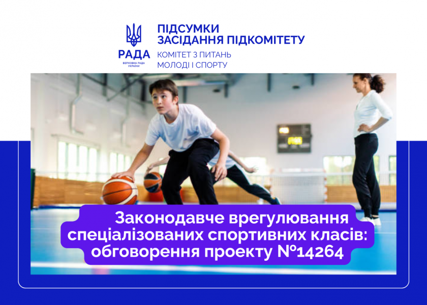 На спільному засіданні підкомітетів Комітету Верховної Ради України з питань молоді і спорту 11 лютого 2026 року розглянуто проект Закону України «Про внесення змін до статті 26 Закону України «Про фізичну культуру і спорт» щодо утворення та функціонування спеціалізованих спортивних класів (реєстр. № 14264), поданий Кабінетом Міністрів України.