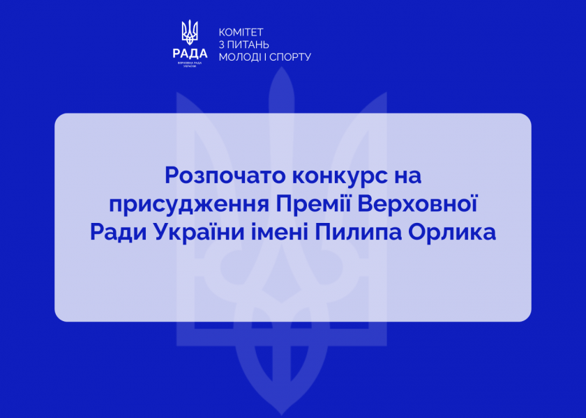 Відповідно до пункту 6 Положення про Премії Верховної Ради України імені Пилипа Орлика Комітет з питань молоді і спорту розмістив на своєму офіційному веб-сайті та в газеті Верховної Ради України "Голос України" інформацію про початок проведення конкурсу на присудження Премії Верховної Ради України імені Пилипа Орлика.